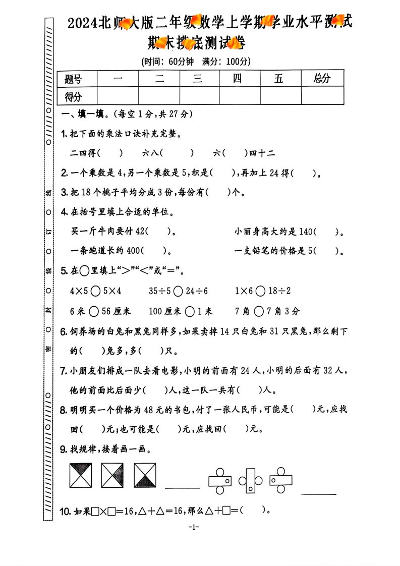 当前位置: 首页小学资源小学二年级正文 2024秋二上数学期末试卷北师大版_共27页 小学二年级 2 周前 0 0 15 以上为部分内容预览,如需源文档请登录您的会员账号进行下载! 声明:本站所有文章,如无特殊说明或标注,均为本站原创发布。任何个人或组织,在未征得本站同意时,禁止复制、盗用、采集、发布本站内容到任何网站、书籍等各类媒体平台。如若本站内容侵犯了原著者的合法权益,可联系我们进行处理。 尚学资源永久会员 打赏 收藏 海报 链接