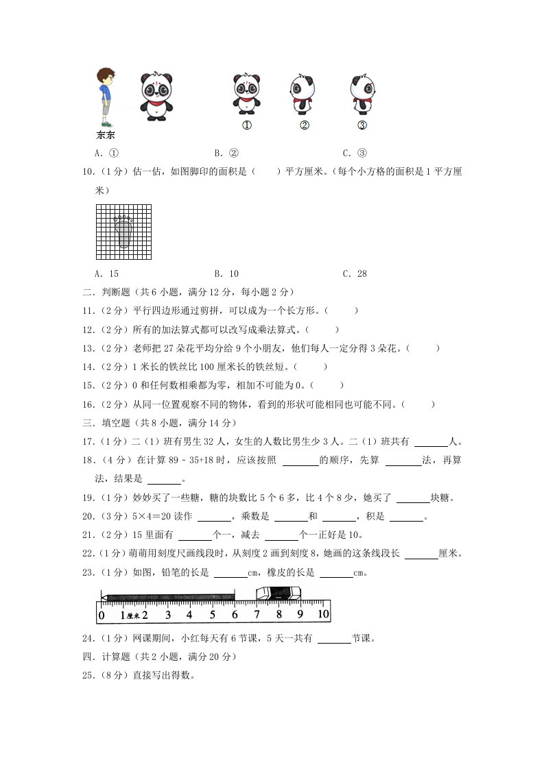 当前位置: 首页小学资源小学二年级正文 2022-2023学年江苏省淮安市金湖县二年级上册数学期末试题及答案(Word版)_共8页 小学二年级 2 周前 0 0 5 以上为部分内容预览,如需源文档请登录您的会员账号进行下载! 声明:本站所有文章,如无特殊说明或标注,均为本站原创发布。任何个人或组织,在未征得本站同意时,禁止复制、盗用、采集、发布本站内容到任何网站、书籍等各类媒体平台。如若本站内容侵犯了原著者的合法权益,可联系我们进行处理。 尚学资源永久会员 打赏 收藏 海报 链接
