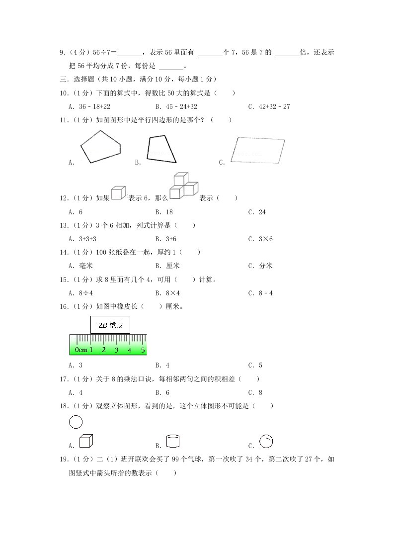 当前位置: 首页小学资源小学二年级正文 2022-2023学年江苏省淮安市盱眙县二年级上学期数学期末试题及答案(Word版)_共9页 小学二年级 2 周前 0 0 5 以上为部分内容预览,如需源文档请登录您的会员账号进行下载! 声明:本站所有文章,如无特殊说明或标注,均为本站原创发布。任何个人或组织,在未征得本站同意时,禁止复制、盗用、采集、发布本站内容到任何网站、书籍等各类媒体平台。如若本站内容侵犯了原著者的合法权益,可联系我们进行处理。 尚学资源永久会员 打赏 收藏 海报 链接