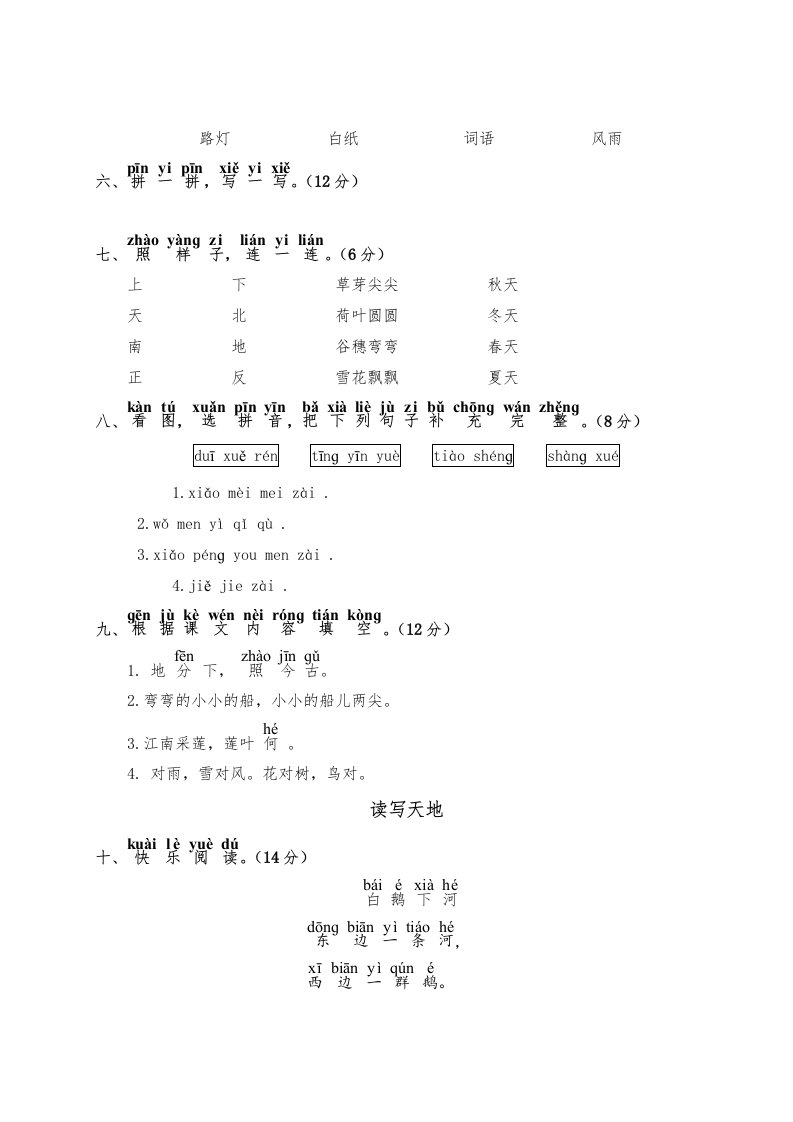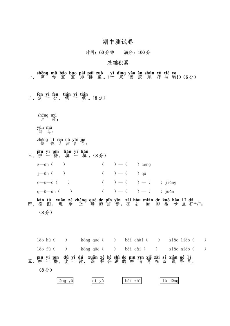 当前位置: 首页小学资源小学一年级正文 一年级语文上册期中测试卷1(部编版)_共4页 小学一年级 2 周前 0 0 5 以上为部分内容预览,如需源文档请登录您的会员账号进行下载! 声明:本站所有文章,如无特殊说明或标注,均为本站原创发布。任何个人或组织,在未征得本站同意时,禁止复制、盗用、采集、发布本站内容到任何网站、书籍等各类媒体平台。如若本站内容侵犯了原著者的合法权益,可联系我们进行处理。 尚学资源永久会员 打赏 收藏 海报 链接