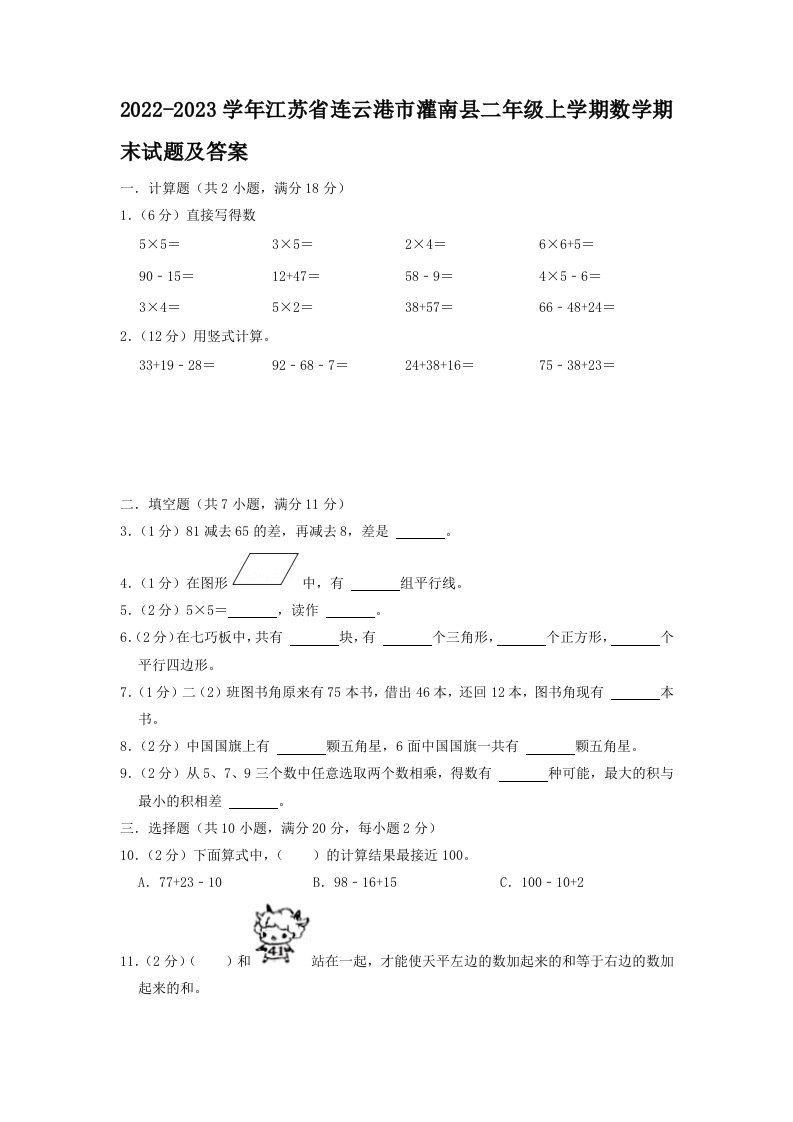 当前位置: 首页小学资源小学二年级正文 2022-2023学年江苏省连云港市灌南县二年级上学期数学期末试题及答案(Word版)_共9页 小学二年级 2 周前 0 0 5 以上为部分内容预览,如需源文档请登录您的会员账号进行下载! 声明:本站所有文章,如无特殊说明或标注,均为本站原创发布。任何个人或组织,在未征得本站同意时,禁止复制、盗用、采集、发布本站内容到任何网站、书籍等各类媒体平台。如若本站内容侵犯了原著者的合法权益,可联系我们进行处理。 尚学资源永久会员 打赏 收藏 海报 链接