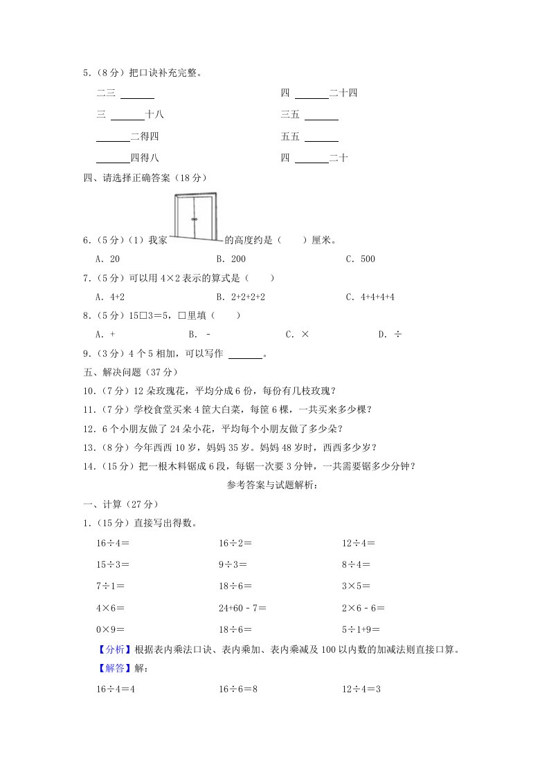 当前位置: 首页小学资源小学二年级正文 2022-2023学年江苏省徐州市鼓楼区二年级上学期数学期中试题及答案(Word版)_共7页 小学二年级 2 周前 0 0 5 以上为部分内容预览,如需源文档请登录您的会员账号进行下载! 声明:本站所有文章,如无特殊说明或标注,均为本站原创发布。任何个人或组织,在未征得本站同意时,禁止复制、盗用、采集、发布本站内容到任何网站、书籍等各类媒体平台。如若本站内容侵犯了原著者的合法权益,可联系我们进行处理。 尚学资源永久会员 打赏 收藏 海报 链接