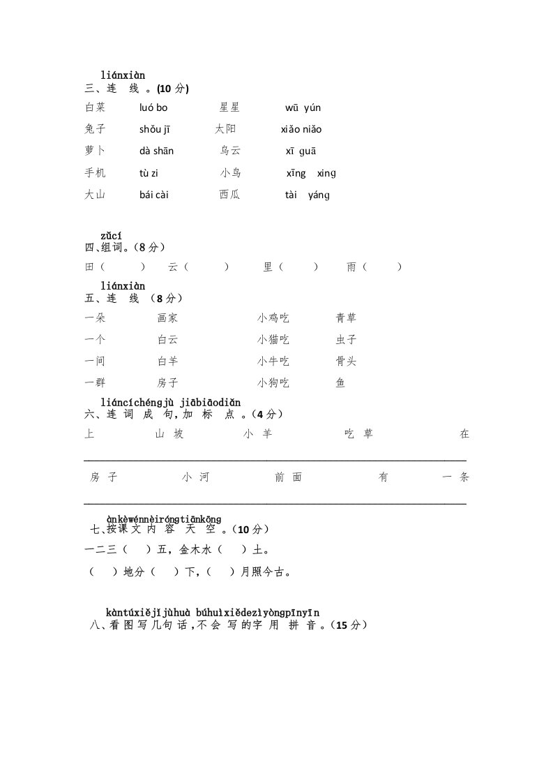 当前位置: 首页小学资源小学一年级正文 一年级语文上册期中测试(10)(部编版)_共5页 小学一年级 2 周前 0 0 5 以上为部分内容预览,如需源文档请登录您的会员账号进行下载! 声明:本站所有文章,如无特殊说明或标注,均为本站原创发布。任何个人或组织,在未征得本站同意时,禁止复制、盗用、采集、发布本站内容到任何网站、书籍等各类媒体平台。如若本站内容侵犯了原著者的合法权益,可联系我们进行处理。 尚学资源永久会员 打赏 收藏 海报 链接
