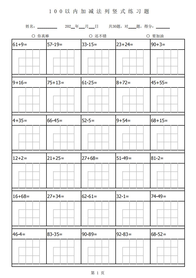 当前位置: 首页小学资源小学二年级正文 二上数学以内加减法列竖式练习题题_共56页 小学二年级 2 周前 0 0 15 以上为部分内容预览,如需源文档请登录您的会员账号进行下载! 声明:本站所有文章,如无特殊说明或标注,均为本站原创发布。任何个人或组织,在未征得本站同意时,禁止复制、盗用、采集、发布本站内容到任何网站、书籍等各类媒体平台。如若本站内容侵犯了原著者的合法权益,可联系我们进行处理。 尚学资源永久会员 打赏 收藏 海报 链接
