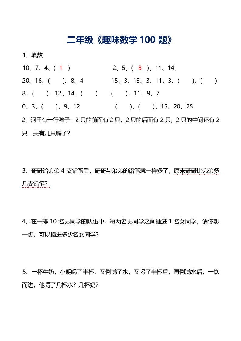 当前位置: 首页小学资源小学二年级正文 二上数学数学思维训练趣味题()_共20页 小学二年级 2 周前 0 0 10 以上为部分内容预览,如需源文档请登录您的会员账号进行下载! 声明:本站所有文章,如无特殊说明或标注,均为本站原创发布。任何个人或组织,在未征得本站同意时,禁止复制、盗用、采集、发布本站内容到任何网站、书籍等各类媒体平台。如若本站内容侵犯了原著者的合法权益,可联系我们进行处理。 尚学资源永久会员 打赏 收藏 海报 链接