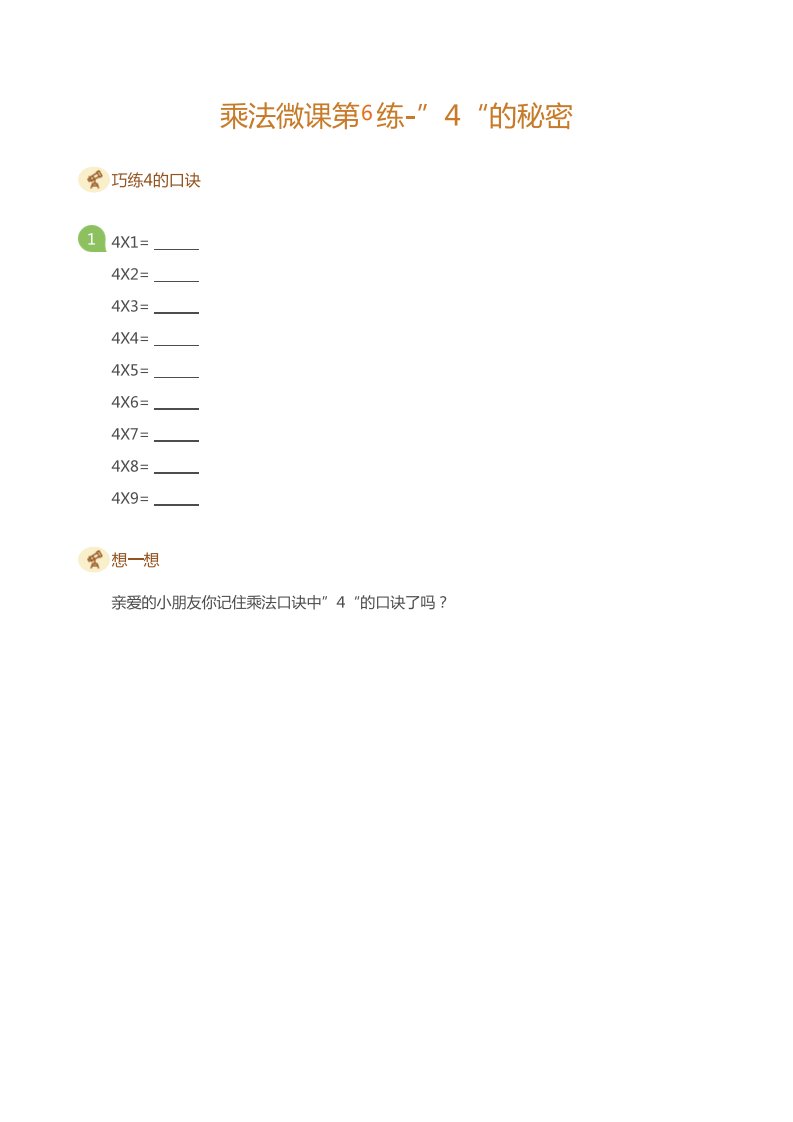 当前位置: 首页小学资源小学二年级正文 二上数学乘法打卡第六天_共4页 小学二年级 2 周前 0 0 5 以上为部分内容预览,如需源文档请登录您的会员账号进行下载! 声明:本站所有文章,如无特殊说明或标注,均为本站原创发布。任何个人或组织,在未征得本站同意时,禁止复制、盗用、采集、发布本站内容到任何网站、书籍等各类媒体平台。如若本站内容侵犯了原著者的合法权益,可联系我们进行处理。 尚学资源永久会员 打赏 收藏 海报 链接