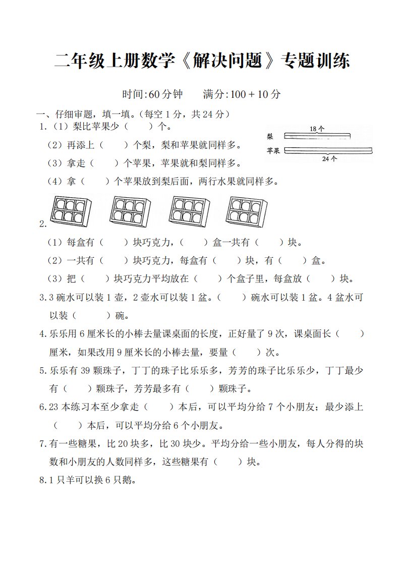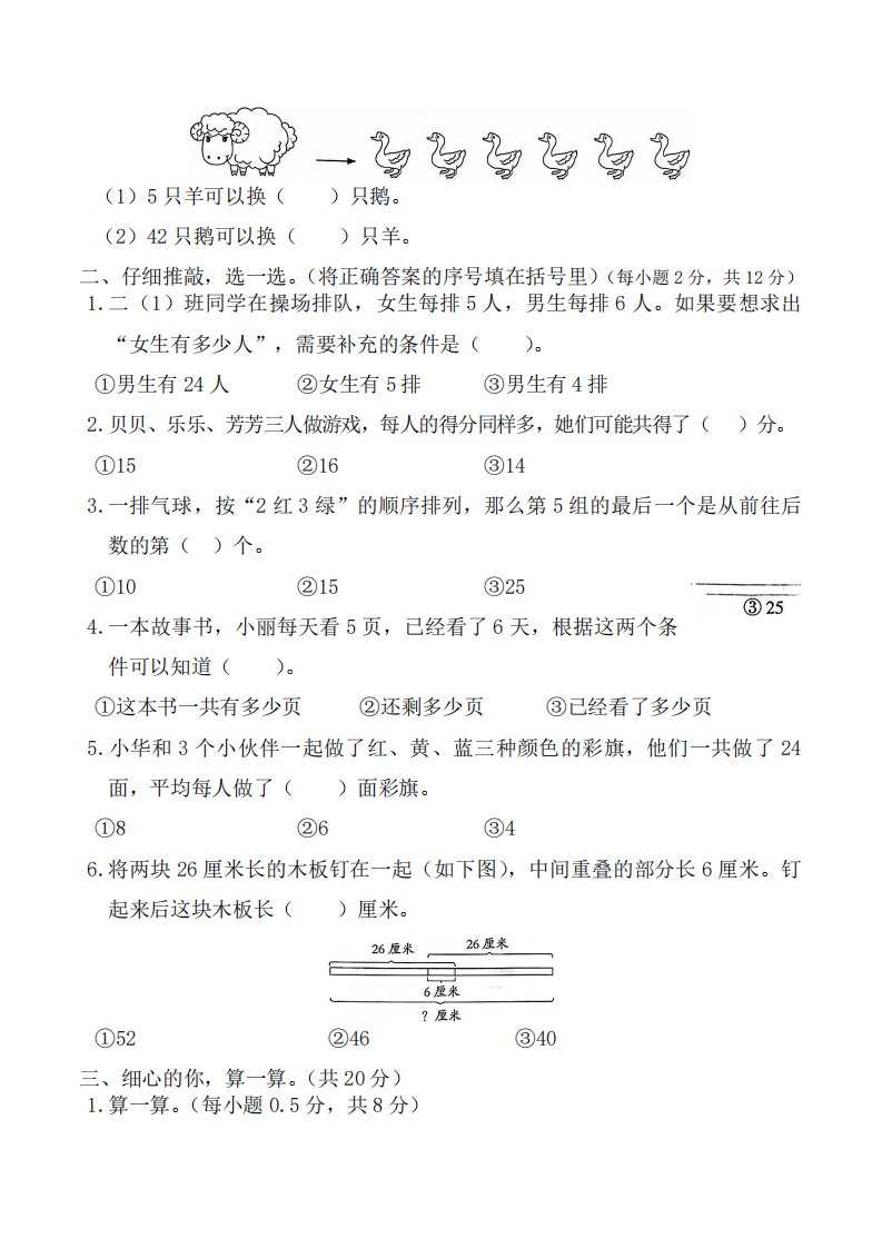 当前位置: 首页小学资源小学二年级正文 ☆二上数学解决问题专题训练()()_共5页 小学二年级 2 周前 0 0 5 以上为部分内容预览,如需源文档请登录您的会员账号进行下载! 声明:本站所有文章,如无特殊说明或标注,均为本站原创发布。任何个人或组织,在未征得本站同意时,禁止复制、盗用、采集、发布本站内容到任何网站、书籍等各类媒体平台。如若本站内容侵犯了原著者的合法权益,可联系我们进行处理。 尚学资源永久会员 打赏 收藏 海报 链接