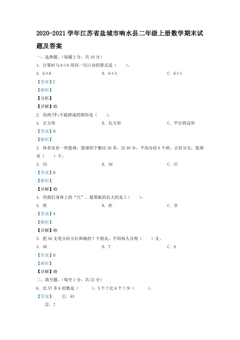 当前位置: 首页小学资源小学二年级正文 2020-2021学年江苏省盐城市响水县二年级上册数学期末试题及答案(Word版)_共7页 小学二年级 2 周前 0 0 5 以上为部分内容预览,如需源文档请登录您的会员账号进行下载! 声明:本站所有文章,如无特殊说明或标注,均为本站原创发布。任何个人或组织,在未征得本站同意时,禁止复制、盗用、采集、发布本站内容到任何网站、书籍等各类媒体平台。如若本站内容侵犯了原著者的合法权益,可联系我们进行处理。 尚学资源永久会员 打赏 收藏 海报 链接
