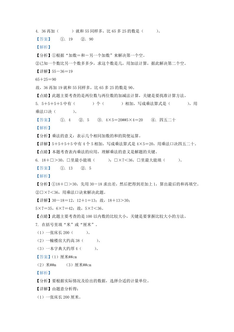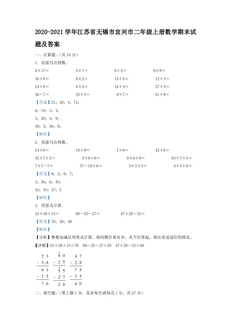 2020-2021学年江苏省无锡市宜兴市二年级上册数学期末试题及答案(Word版)_共11页