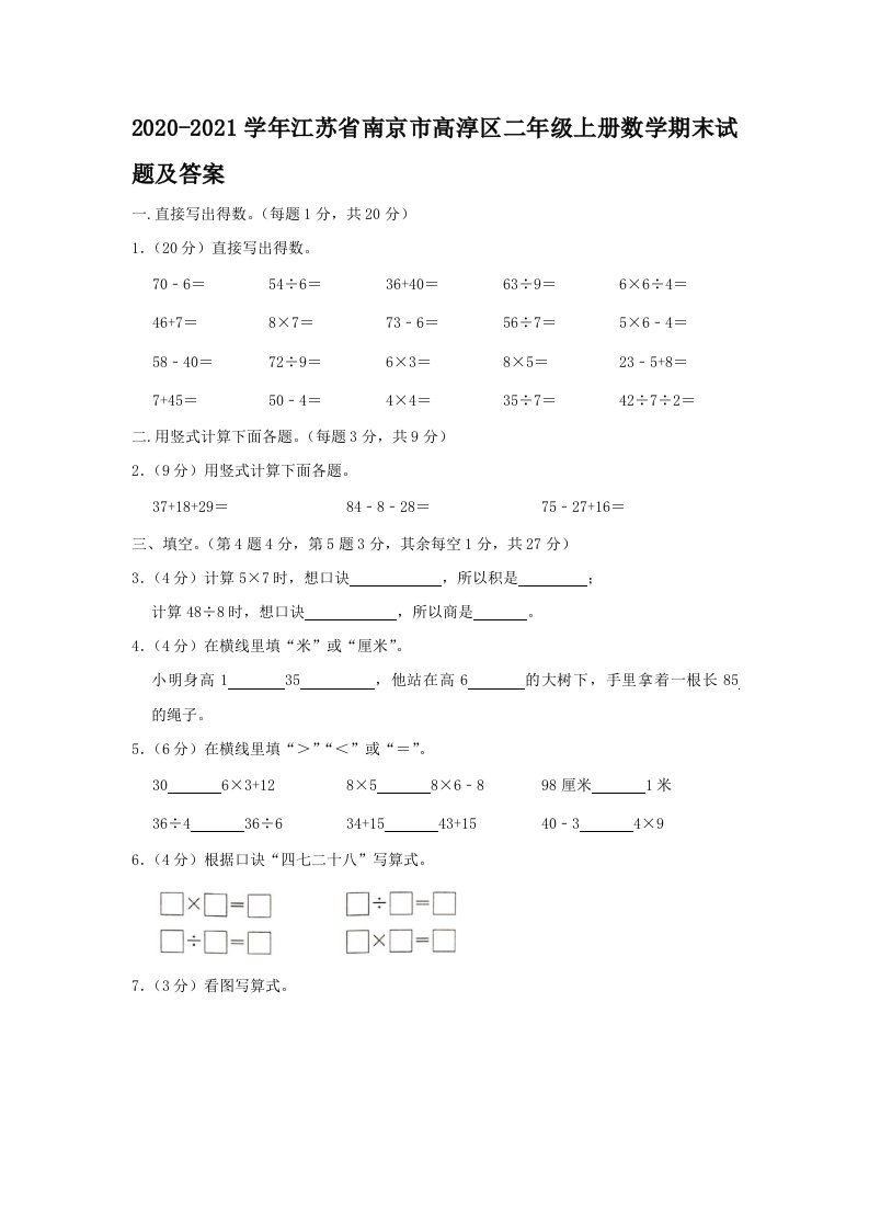 当前位置: 首页小学资源小学二年级正文 2020-2021学年江苏省南京市高淳区二年级上册数学期末试题及答案(Word版)_共9页 小学二年级 2 周前 0 0 5 以上为部分内容预览,如需源文档请登录您的会员账号进行下载! 声明:本站所有文章,如无特殊说明或标注,均为本站原创发布。任何个人或组织,在未征得本站同意时,禁止复制、盗用、采集、发布本站内容到任何网站、书籍等各类媒体平台。如若本站内容侵犯了原著者的合法权益,可联系我们进行处理。 尚学资源永久会员 打赏 收藏 海报 链接