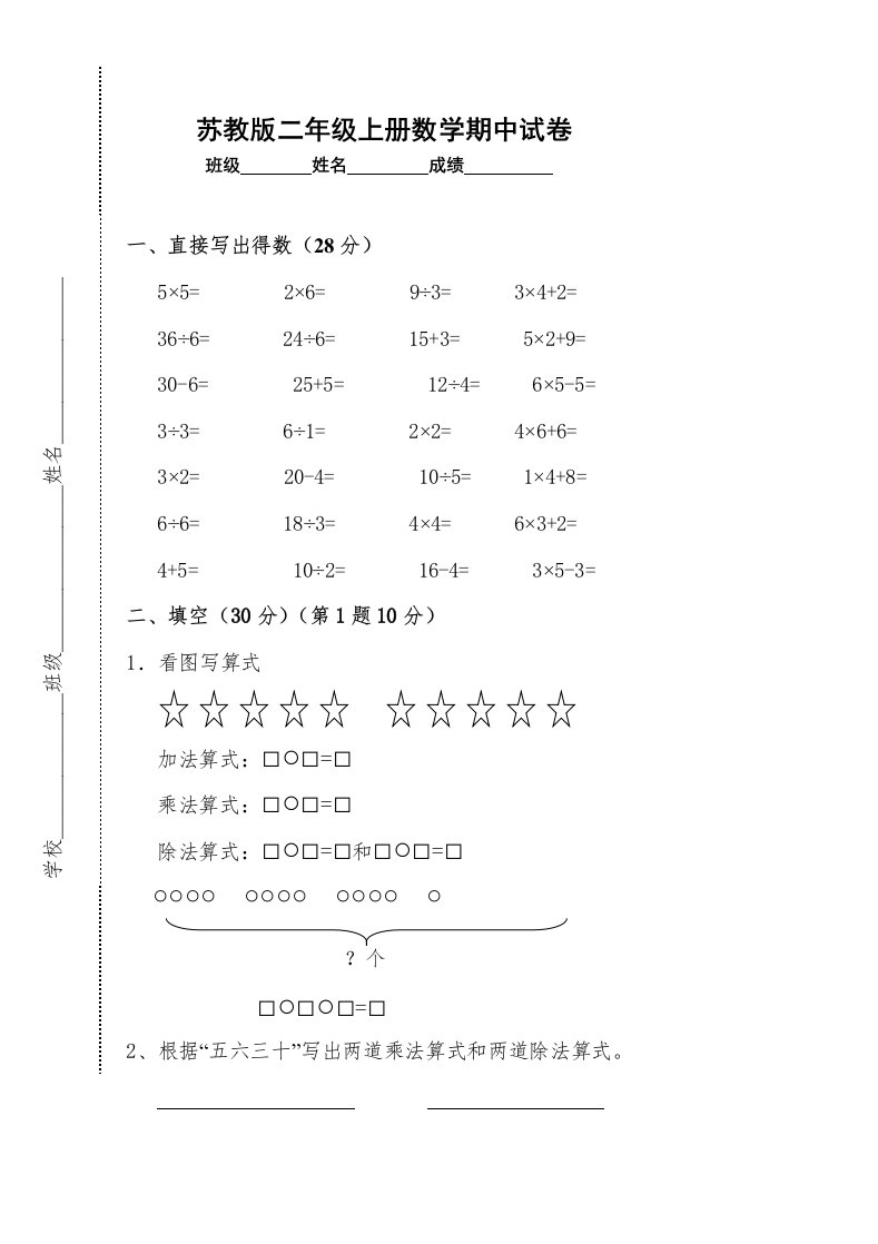 二年级数学上册新期中试卷2(苏教版)_共4页