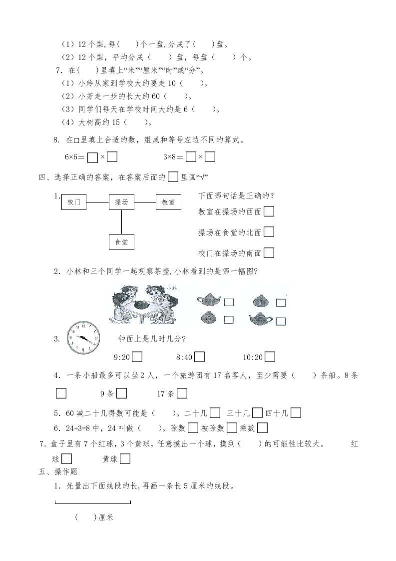 当前位置: 首页小学资源小学二年级正文 二年级数学上册2016期末测试卷(苏教版)_共5页 小学二年级 2 周前 0 0 5 以上为部分内容预览,如需源文档请登录您的会员账号进行下载! 声明:本站所有文章,如无特殊说明或标注,均为本站原创发布。任何个人或组织,在未征得本站同意时,禁止复制、盗用、采集、发布本站内容到任何网站、书籍等各类媒体平台。如若本站内容侵犯了原著者的合法权益,可联系我们进行处理。 尚学资源永久会员 打赏 收藏 海报 链接