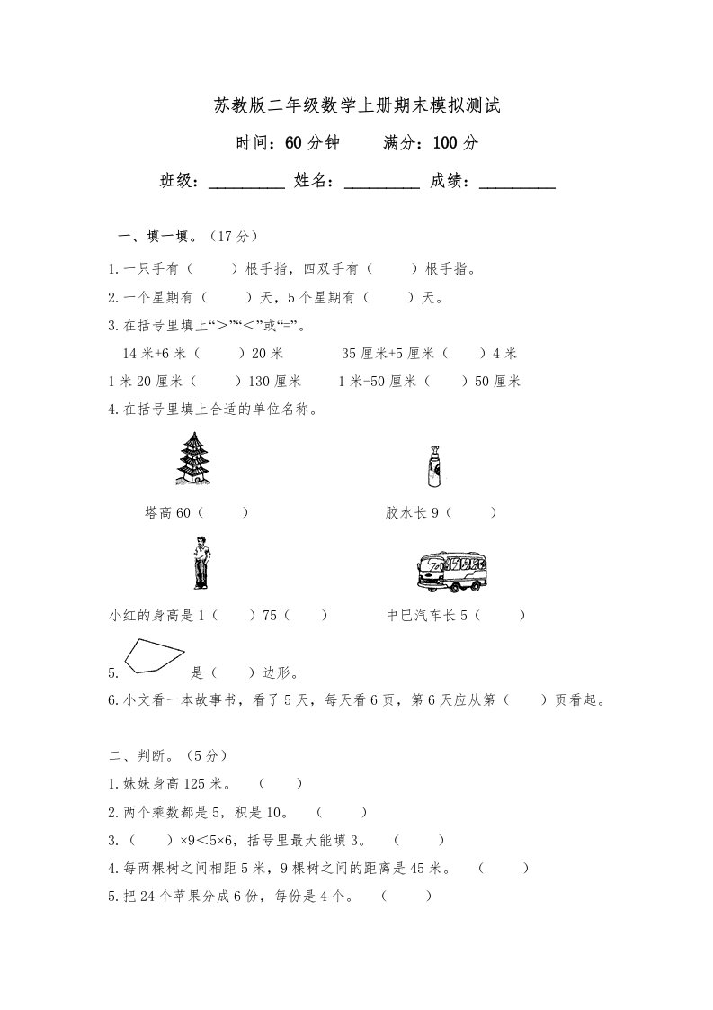 当前位置: 首页小学资源小学二年级正文 二年级数学上册期末模拟试卷及答案(苏教版)_共6页 小学二年级 2 周前 0 0 5 以上为部分内容预览,如需源文档请登录您的会员账号进行下载! 声明:本站所有文章,如无特殊说明或标注,均为本站原创发布。任何个人或组织,在未征得本站同意时,禁止复制、盗用、采集、发布本站内容到任何网站、书籍等各类媒体平台。如若本站内容侵犯了原著者的合法权益,可联系我们进行处理。 尚学资源永久会员 打赏 收藏 海报 链接
