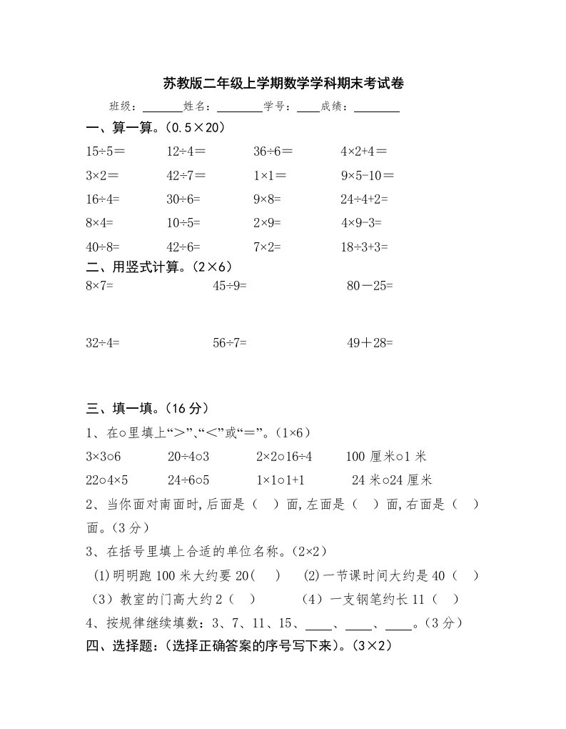当前位置: 首页小学资源小学二年级正文 二年级数学上册上学期学科期末考试卷(苏教版)_共4页 小学二年级 2 周前 0 0 5 以上为部分内容预览,如需源文档请登录您的会员账号进行下载! 声明:本站所有文章,如无特殊说明或标注,均为本站原创发布。任何个人或组织,在未征得本站同意时,禁止复制、盗用、采集、发布本站内容到任何网站、书籍等各类媒体平台。如若本站内容侵犯了原著者的合法权益,可联系我们进行处理。 尚学资源永久会员 打赏 收藏 海报 链接