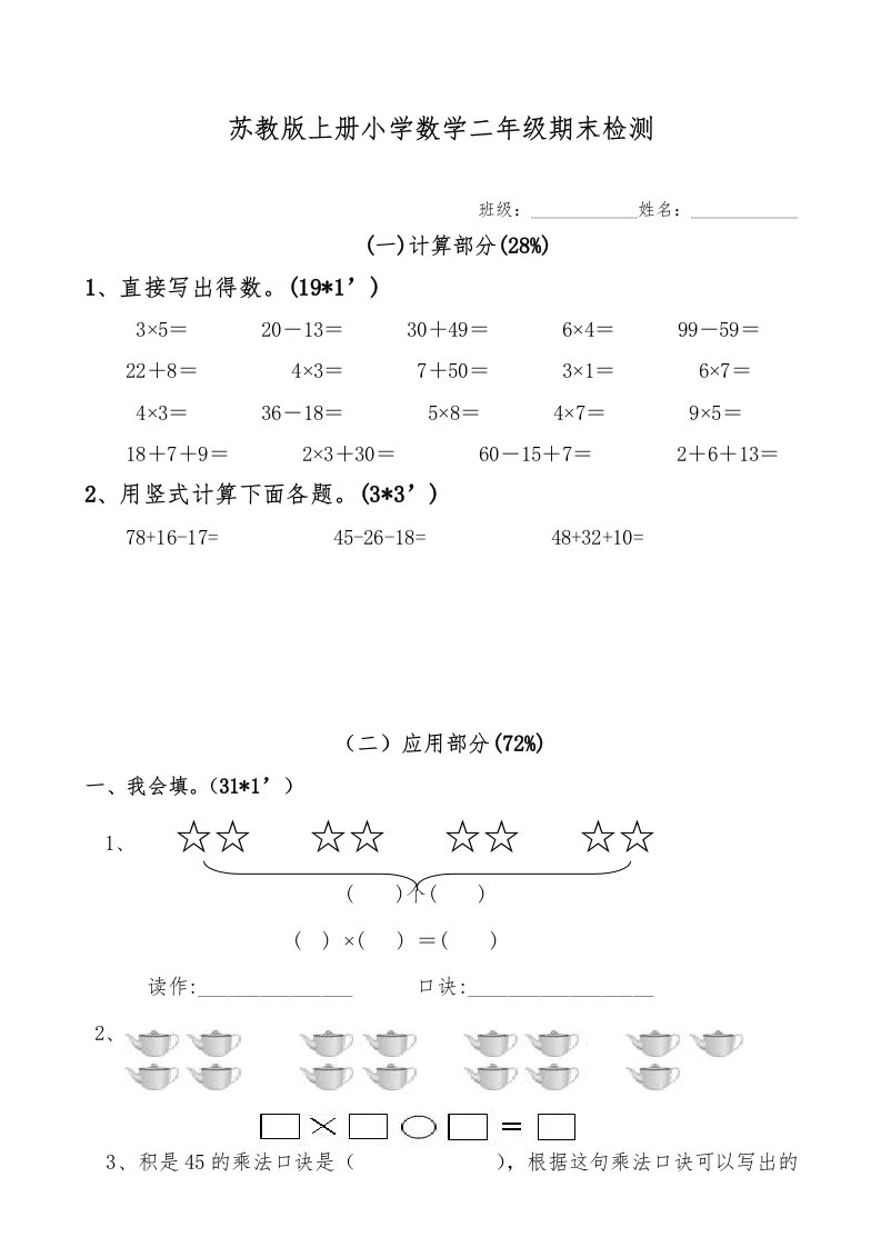 当前位置: 首页小学资源小学二年级正文 二年级数学上册新期末试卷1(苏教版)_共4页 小学二年级 2 周前 0 0 5 以上为部分内容预览,如需源文档请登录您的会员账号进行下载! 声明:本站所有文章,如无特殊说明或标注,均为本站原创发布。任何个人或组织,在未征得本站同意时,禁止复制、盗用、采集、发布本站内容到任何网站、书籍等各类媒体平台。如若本站内容侵犯了原著者的合法权益,可联系我们进行处理。 尚学资源永久会员 打赏 收藏 海报 链接