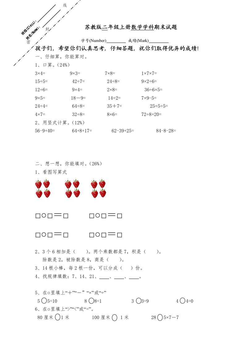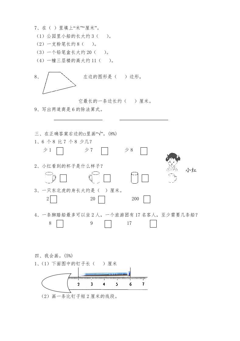 当前位置: 首页小学资源小学二年级正文 二年级数学上册新期末试卷2(苏教版)_共4页 小学二年级 2 周前 0 0 5 以上为部分内容预览,如需源文档请登录您的会员账号进行下载! 声明:本站所有文章,如无特殊说明或标注,均为本站原创发布。任何个人或组织,在未征得本站同意时,禁止复制、盗用、采集、发布本站内容到任何网站、书籍等各类媒体平台。如若本站内容侵犯了原著者的合法权益,可联系我们进行处理。 尚学资源永久会员 打赏 收藏 海报 链接