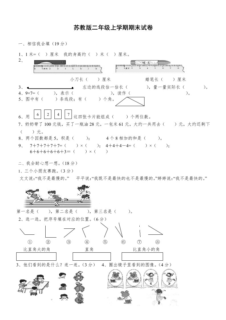 当前位置: 首页小学资源小学二年级正文 二年级数学上册新期末试卷3(苏教版)_共4页 小学二年级 2 周前 0 0 5 以上为部分内容预览,如需源文档请登录您的会员账号进行下载! 声明:本站所有文章,如无特殊说明或标注,均为本站原创发布。任何个人或组织,在未征得本站同意时,禁止复制、盗用、采集、发布本站内容到任何网站、书籍等各类媒体平台。如若本站内容侵犯了原著者的合法权益,可联系我们进行处理。 尚学资源永久会员 打赏 收藏 海报 链接