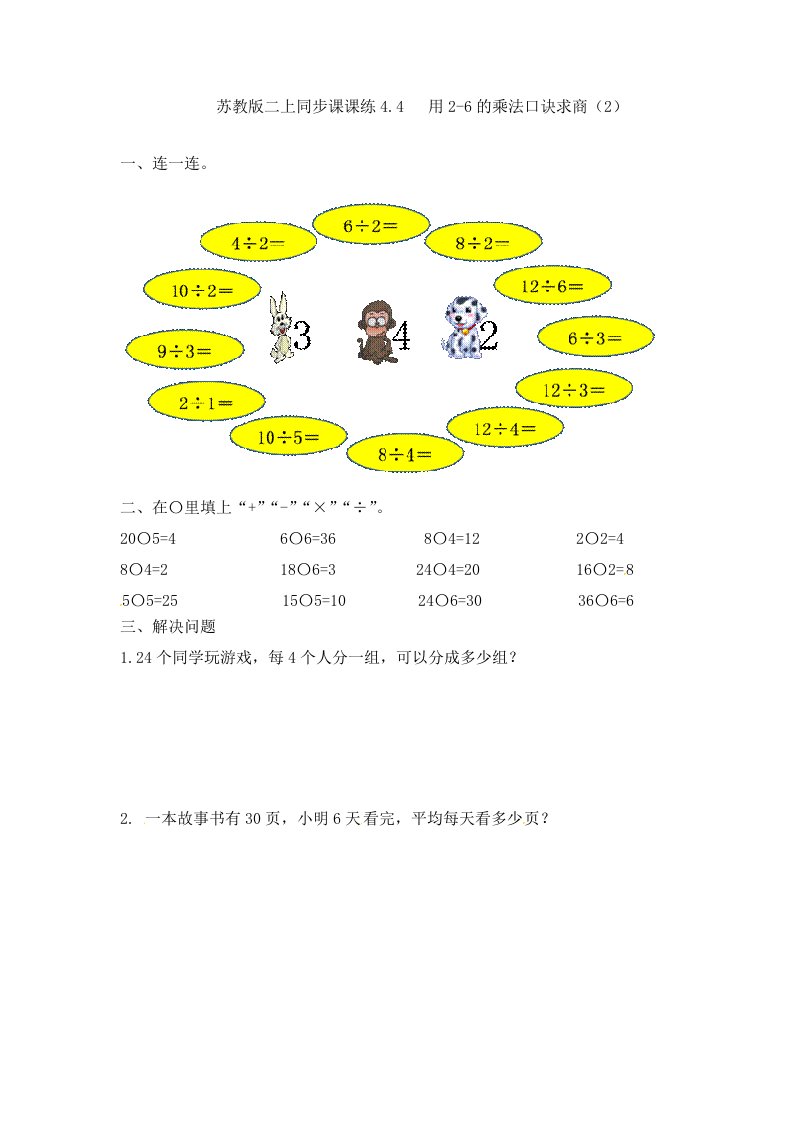 当前位置: 首页小学资源小学二年级正文 二年级数学上册4.4用2-6的乘法口诀求商(2)-(苏教版)_共3页 小学二年级 2 周前 0 0 5 以上为部分内容预览,如需源文档请登录您的会员账号进行下载! 声明:本站所有文章,如无特殊说明或标注,均为本站原创发布。任何个人或组织,在未征得本站同意时,禁止复制、盗用、采集、发布本站内容到任何网站、书籍等各类媒体平台。如若本站内容侵犯了原著者的合法权益,可联系我们进行处理。 尚学资源永久会员 打赏 收藏 海报 链接