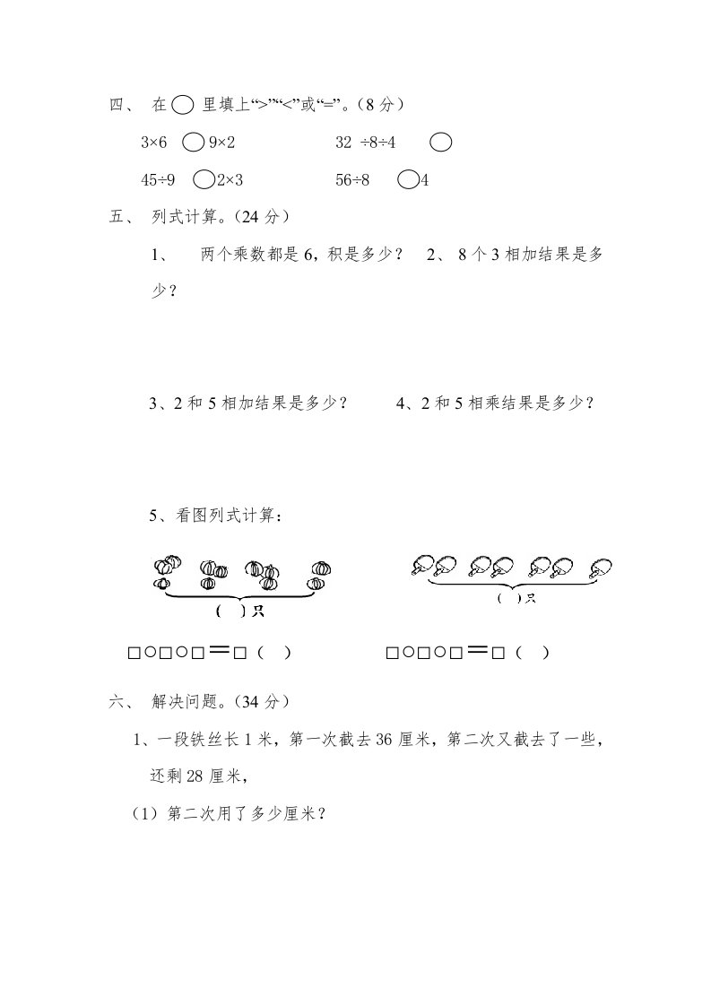 当前位置: 首页小学资源小学二年级正文 二年级数学上册6、表内乘法与表内除法(二)测试(2)(苏教版)_共4页 小学二年级 2 周前 0 0 5 以上为部分内容预览,如需源文档请登录您的会员账号进行下载! 声明:本站所有文章,如无特殊说明或标注,均为本站原创发布。任何个人或组织,在未征得本站同意时,禁止复制、盗用、采集、发布本站内容到任何网站、书籍等各类媒体平台。如若本站内容侵犯了原著者的合法权益,可联系我们进行处理。 尚学资源永久会员 打赏 收藏 海报 链接