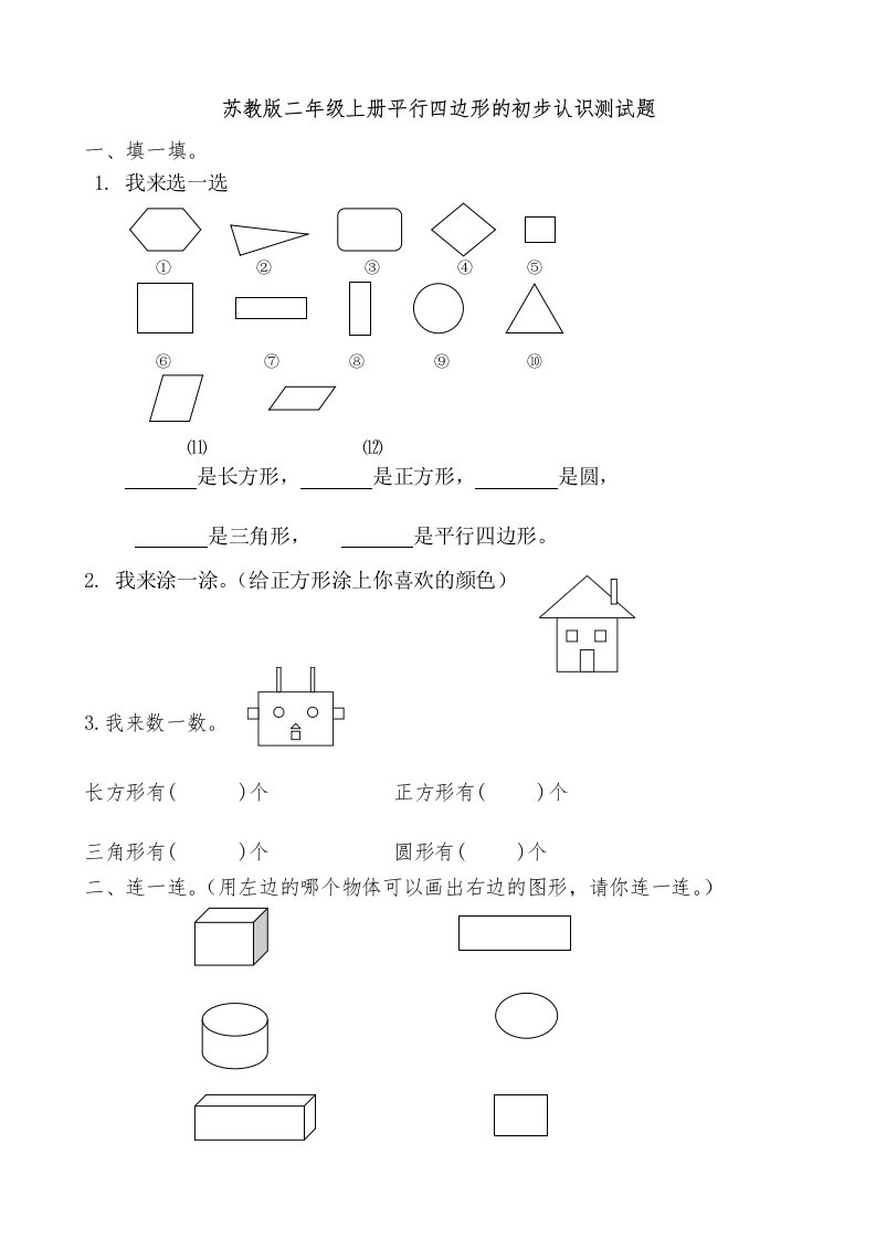 二年级数学上册册平行四边形的初步认识测试题(1)(苏教版)_共1页
