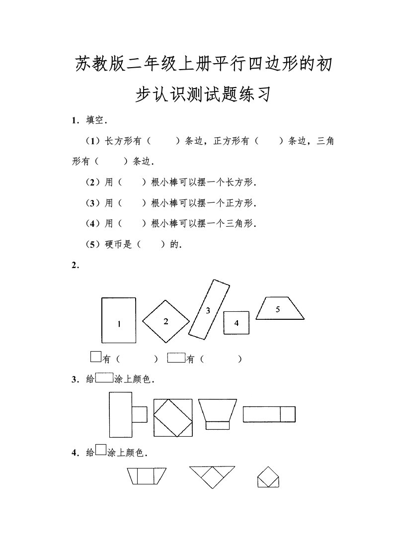 二年级数学上册册平行四边形的初步认识测试题(5)(苏教版)_共5页