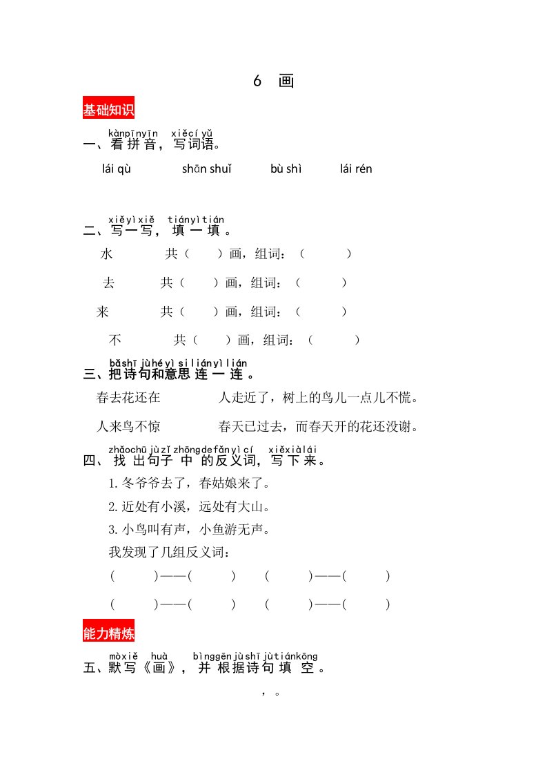 当前位置: 首页小学资源小学一年级正文 一年级语文上册识字6《画》同步练习(部编版)_共3页 小学一年级 2 周前 0 0 5 以上为部分内容预览,如需源文档请登录您的会员账号进行下载! 声明:本站所有文章,如无特殊说明或标注,均为本站原创发布。任何个人或组织,在未征得本站同意时,禁止复制、盗用、采集、发布本站内容到任何网站、书籍等各类媒体平台。如若本站内容侵犯了原著者的合法权益,可联系我们进行处理。 尚学资源永久会员 打赏 收藏 海报 链接