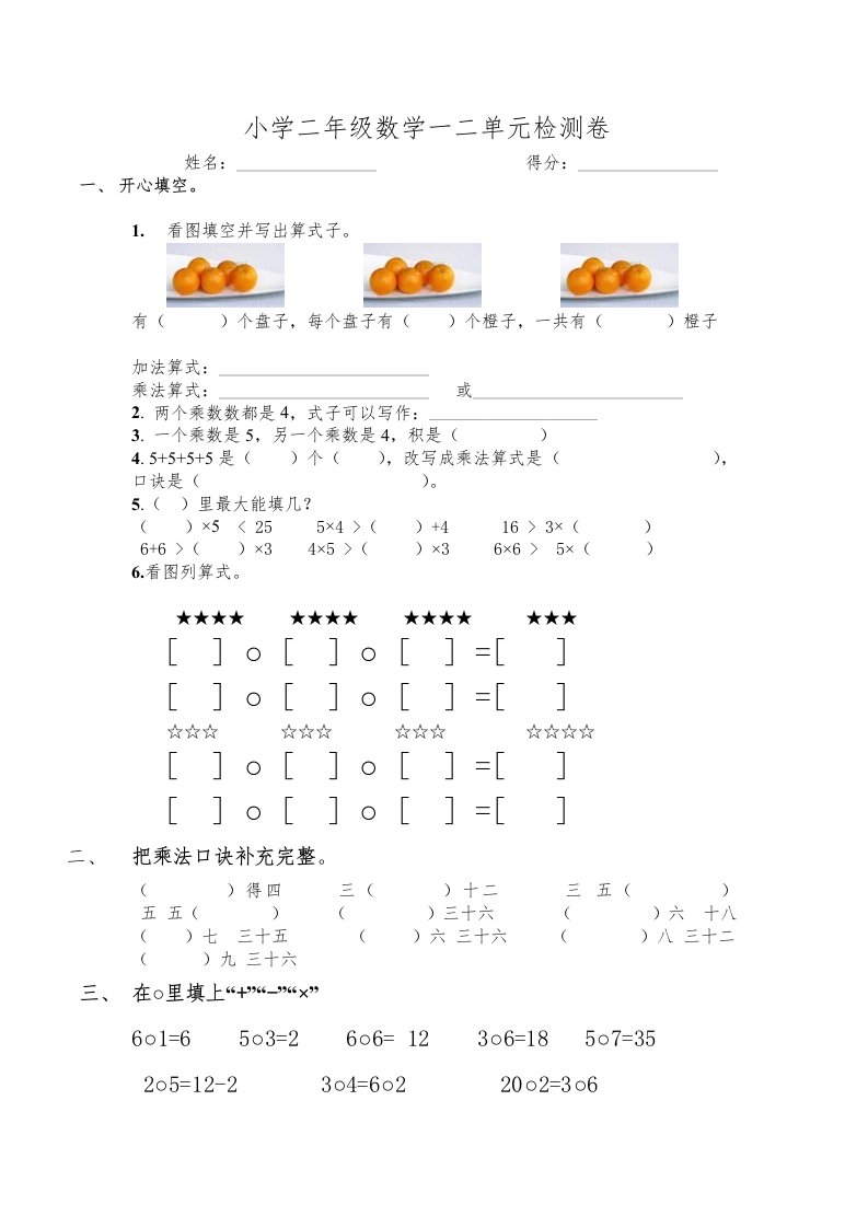 二年级数学上册第一、二单元试卷(苏教版)_共3页