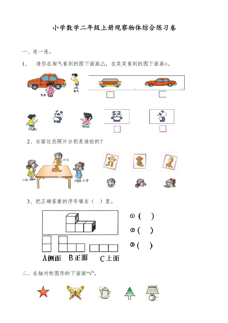 二年级数学上册观察物体综合练习卷(苏教版)_共4页