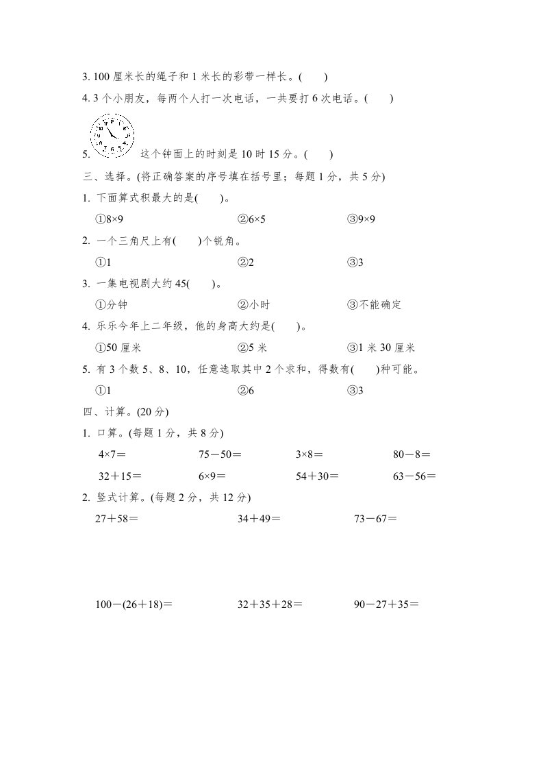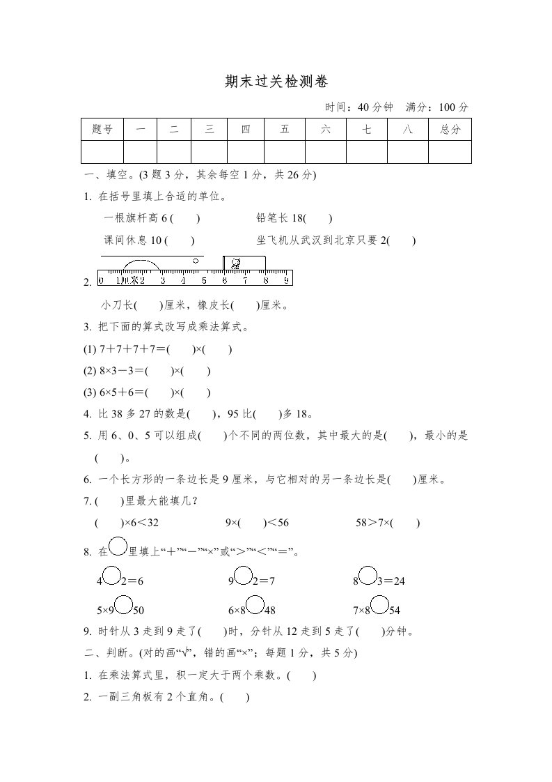 当前位置: 首页小学资源小学二年级正文 二年级数学上册期末测试卷2(人教版)_共7页 小学二年级 2 周前 0 0 5 以上为部分内容预览,如需源文档请登录您的会员账号进行下载! 声明:本站所有文章,如无特殊说明或标注,均为本站原创发布。任何个人或组织,在未征得本站同意时,禁止复制、盗用、采集、发布本站内容到任何网站、书籍等各类媒体平台。如若本站内容侵犯了原著者的合法权益,可联系我们进行处理。 尚学资源永久会员 打赏 收藏 海报 链接