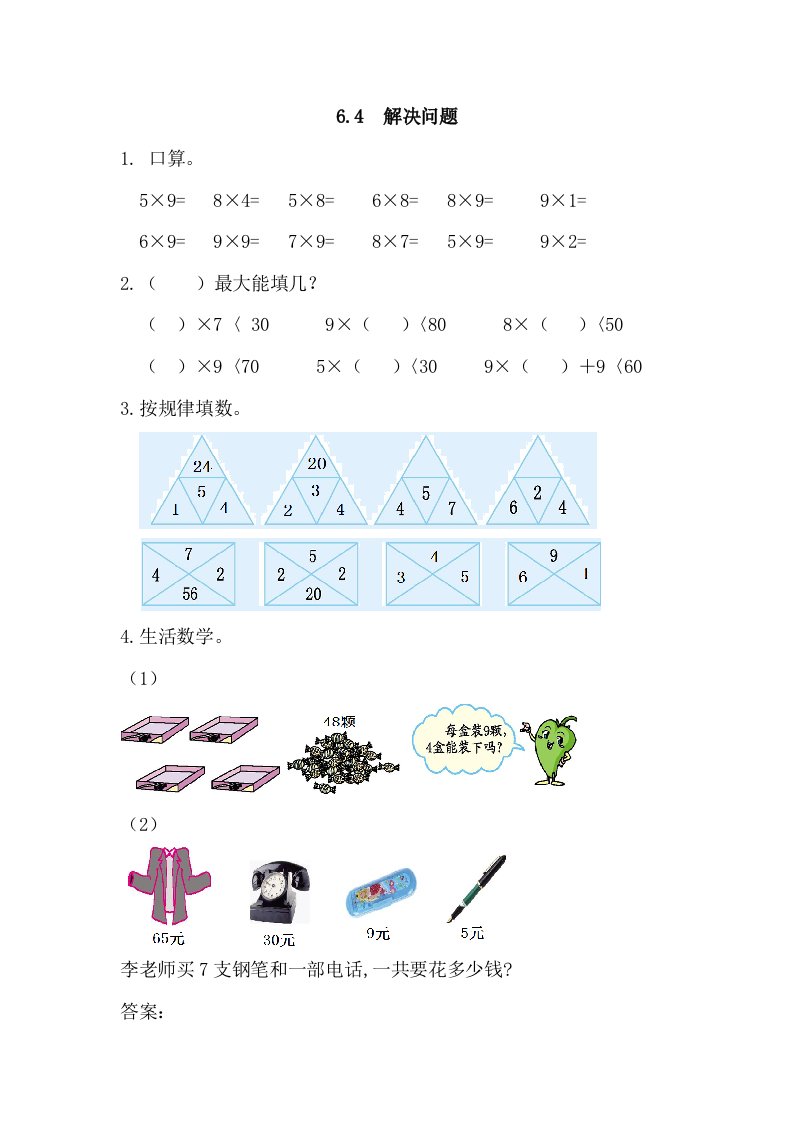 当前位置: 首页小学资源小学二年级正文 二年级数学上册6.4解决问题(人教版)_共2页 小学二年级 2 周前 0 0 5 以上为部分内容预览,如需源文档请登录您的会员账号进行下载! 声明:本站所有文章,如无特殊说明或标注,均为本站原创发布。任何个人或组织,在未征得本站同意时,禁止复制、盗用、采集、发布本站内容到任何网站、书籍等各类媒体平台。如若本站内容侵犯了原著者的合法权益,可联系我们进行处理。 尚学资源永久会员 打赏 收藏 海报 链接