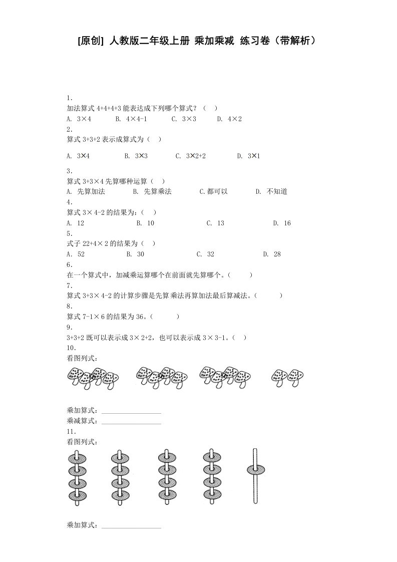 当前位置: 首页小学资源小学二年级正文 二年级数学上册同步练习-乘加乘减-秋(人教版)_共7页 小学二年级 2 周前 0 0 5 以上为部分内容预览,如需源文档请登录您的会员账号进行下载! 声明:本站所有文章,如无特殊说明或标注,均为本站原创发布。任何个人或组织,在未征得本站同意时,禁止复制、盗用、采集、发布本站内容到任何网站、书籍等各类媒体平台。如若本站内容侵犯了原著者的合法权益,可联系我们进行处理。 尚学资源永久会员 打赏 收藏 海报 链接