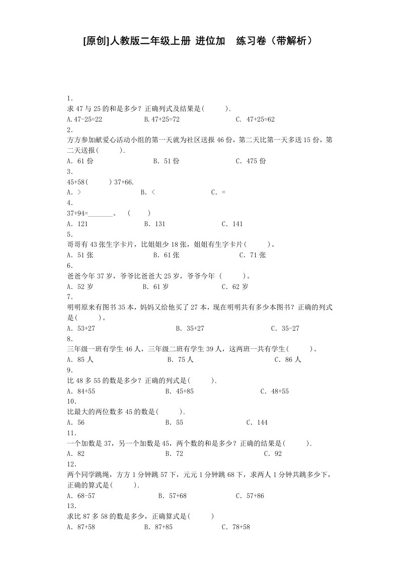 当前位置: 首页小学资源小学二年级正文 二年级数学上册同步练习-进位加-秋(人教版)_共6页 小学二年级 2 周前 0 0 5 以上为部分内容预览,如需源文档请登录您的会员账号进行下载! 声明:本站所有文章,如无特殊说明或标注,均为本站原创发布。任何个人或组织,在未征得本站同意时,禁止复制、盗用、采集、发布本站内容到任何网站、书籍等各类媒体平台。如若本站内容侵犯了原著者的合法权益,可联系我们进行处理。 尚学资源永久会员 打赏 收藏 海报 链接