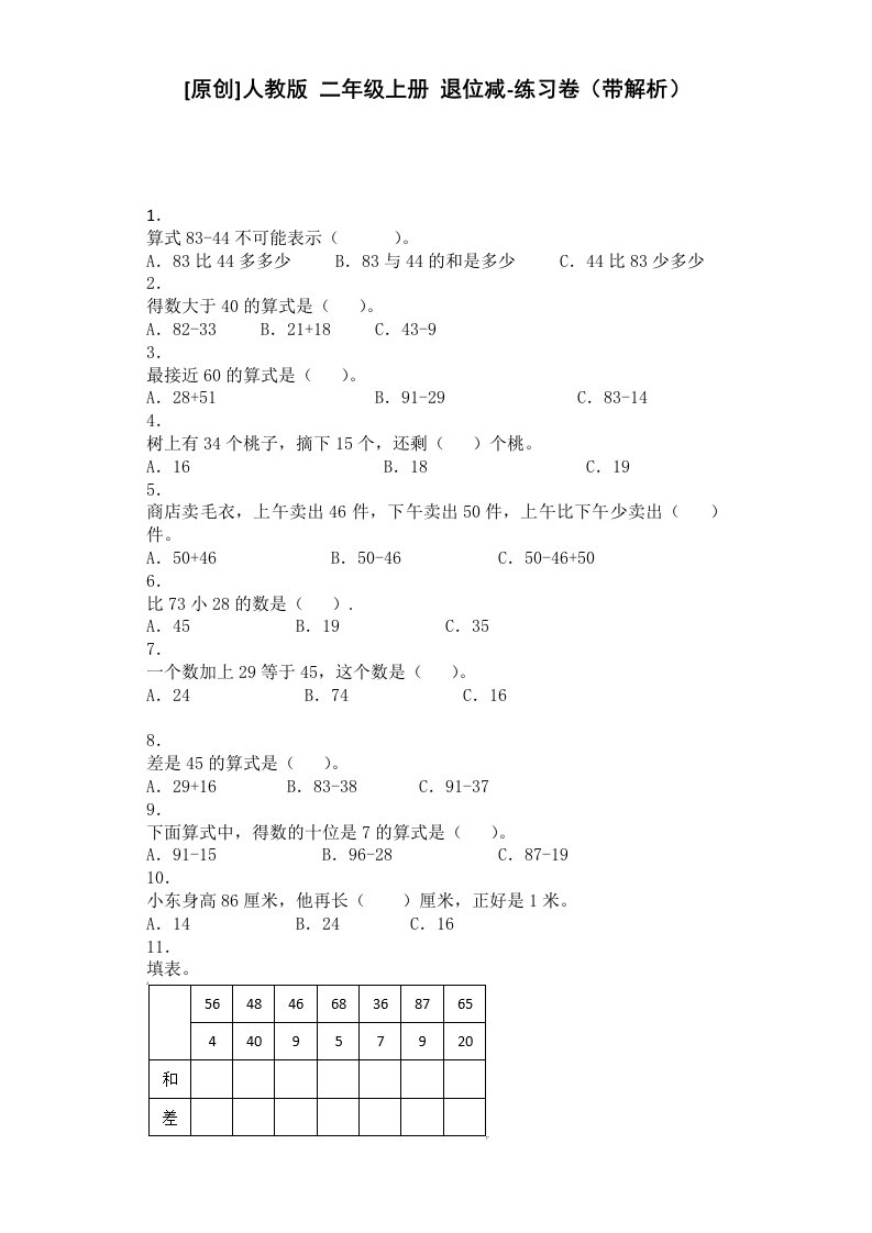 当前位置: 首页小学资源小学二年级正文 二年级数学上册同步练习-退位减-秋(人教版)_共7页 小学二年级 2 周前 0 0 5 以上为部分内容预览,如需源文档请登录您的会员账号进行下载! 声明:本站所有文章,如无特殊说明或标注,均为本站原创发布。任何个人或组织,在未征得本站同意时,禁止复制、盗用、采集、发布本站内容到任何网站、书籍等各类媒体平台。如若本站内容侵犯了原著者的合法权益,可联系我们进行处理。 尚学资源永久会员 打赏 收藏 海报 链接