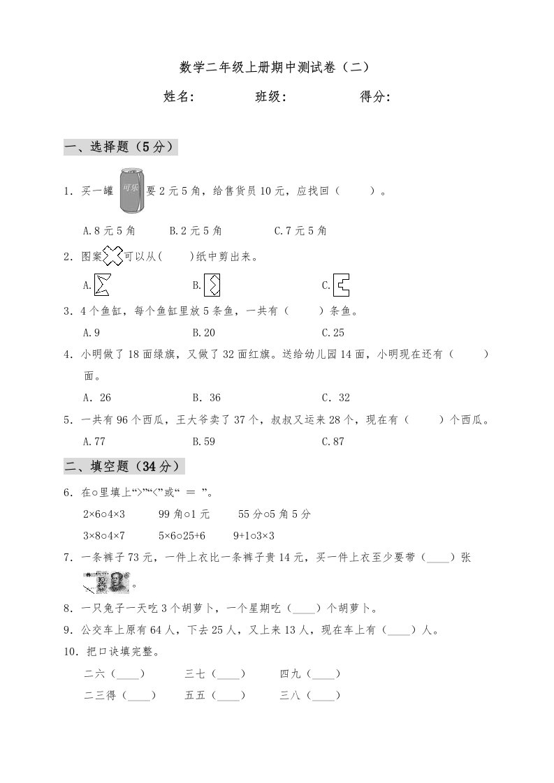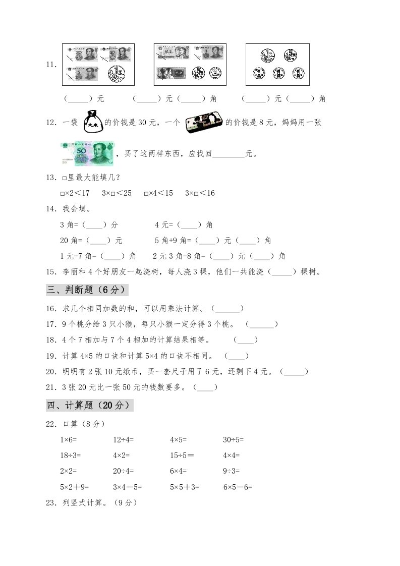 当前位置: 首页小学资源小学二年级正文 二年级数学上册期中练习(1)(北师大版)_共8页 小学二年级 2 周前 0 0 5 以上为部分内容预览,如需源文档请登录您的会员账号进行下载! 声明:本站所有文章,如无特殊说明或标注,均为本站原创发布。任何个人或组织,在未征得本站同意时,禁止复制、盗用、采集、发布本站内容到任何网站、书籍等各类媒体平台。如若本站内容侵犯了原著者的合法权益,可联系我们进行处理。 尚学资源永久会员 打赏 收藏 海报 链接