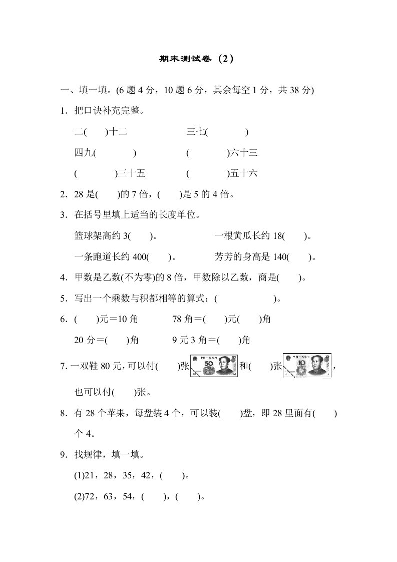 二年级数学上册期末测试卷(2)(北师大版)_共8页