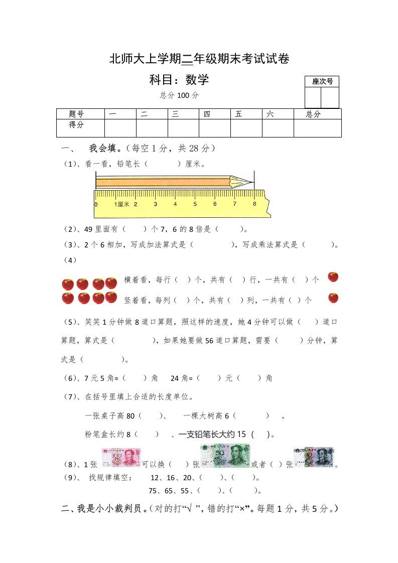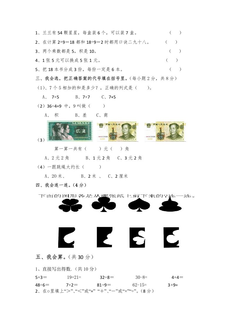 当前位置: 首页小学资源小学二年级正文 二年级数学上册期末试卷4(北师大版)_共6页 小学二年级 2 周前 0 0 5 以上为部分内容预览,如需源文档请登录您的会员账号进行下载! 声明:本站所有文章,如无特殊说明或标注,均为本站原创发布。任何个人或组织,在未征得本站同意时,禁止复制、盗用、采集、发布本站内容到任何网站、书籍等各类媒体平台。如若本站内容侵犯了原著者的合法权益,可联系我们进行处理。 尚学资源永久会员 打赏 收藏 海报 链接