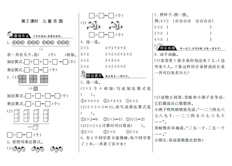 二年级数学上册3.2儿童乐园·(北师大版)_共2页