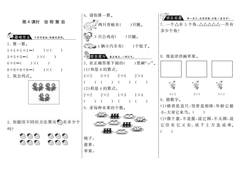 当前位置: 首页小学资源小学二年级正文 二年级数学上册3.4动物聚会·(北师大版)_共2页 小学二年级 2 周前 0 0 5 以上为部分内容预览,如需源文档请登录您的会员账号进行下载! 声明:本站所有文章,如无特殊说明或标注,均为本站原创发布。任何个人或组织,在未征得本站同意时,禁止复制、盗用、采集、发布本站内容到任何网站、书籍等各类媒体平台。如若本站内容侵犯了原著者的合法权益,可联系我们进行处理。 尚学资源永久会员 打赏 收藏 海报 链接