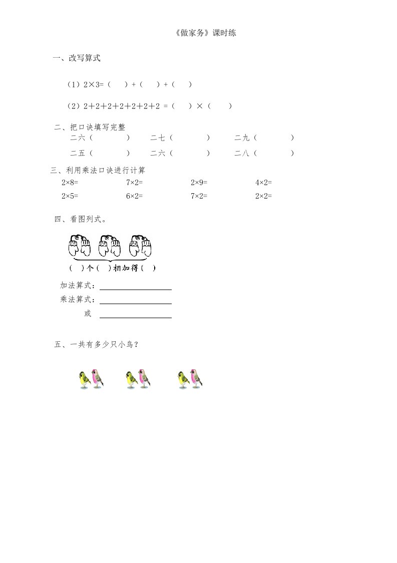 当前位置: 首页小学资源小学二年级正文 二年级数学上册5.2做家务(北师大版)_共2页 小学二年级 2 周前 0 0 5 以上为部分内容预览,如需源文档请登录您的会员账号进行下载! 声明:本站所有文章,如无特殊说明或标注,均为本站原创发布。任何个人或组织,在未征得本站同意时,禁止复制、盗用、采集、发布本站内容到任何网站、书籍等各类媒体平台。如若本站内容侵犯了原著者的合法权益,可联系我们进行处理。 尚学资源永久会员 打赏 收藏 海报 链接