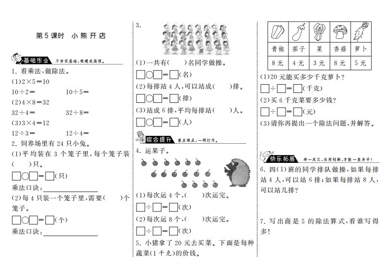 当前位置: 首页小学资源小学二年级正文 二年级数学上册7.5小熊开店·(北师大版)_共2页 小学二年级 2 周前 0 0 5 以上为部分内容预览,如需源文档请登录您的会员账号进行下载! 声明:本站所有文章,如无特殊说明或标注,均为本站原创发布。任何个人或组织,在未征得本站同意时,禁止复制、盗用、采集、发布本站内容到任何网站、书籍等各类媒体平台。如若本站内容侵犯了原著者的合法权益,可联系我们进行处理。 尚学资源永久会员 打赏 收藏 海报 链接