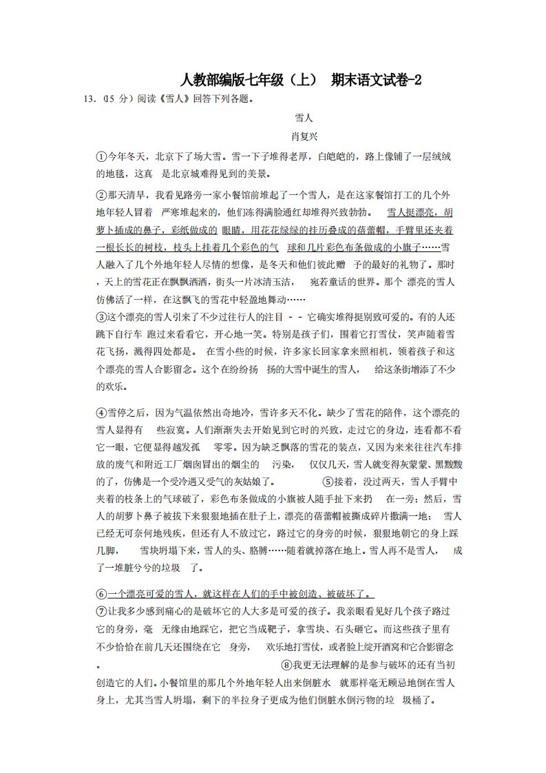 当前位置: 首页初中资源初中七年级正文 七年级(上)语文期末试卷7-2卷人教部编版_共6页 初中七年级 2 周前 0 0 5 以上为部分内容预览,如需源文档请登录您的会员账号进行下载! 声明:本站所有文章,如无特殊说明或标注,均为本站原创发布。任何个人或组织,在未征得本站同意时,禁止复制、盗用、采集、发布本站内容到任何网站、书籍等各类媒体平台。如若本站内容侵犯了原著者的合法权益,可联系我们进行处理。 尚学资源永久会员 打赏 收藏 海报 链接