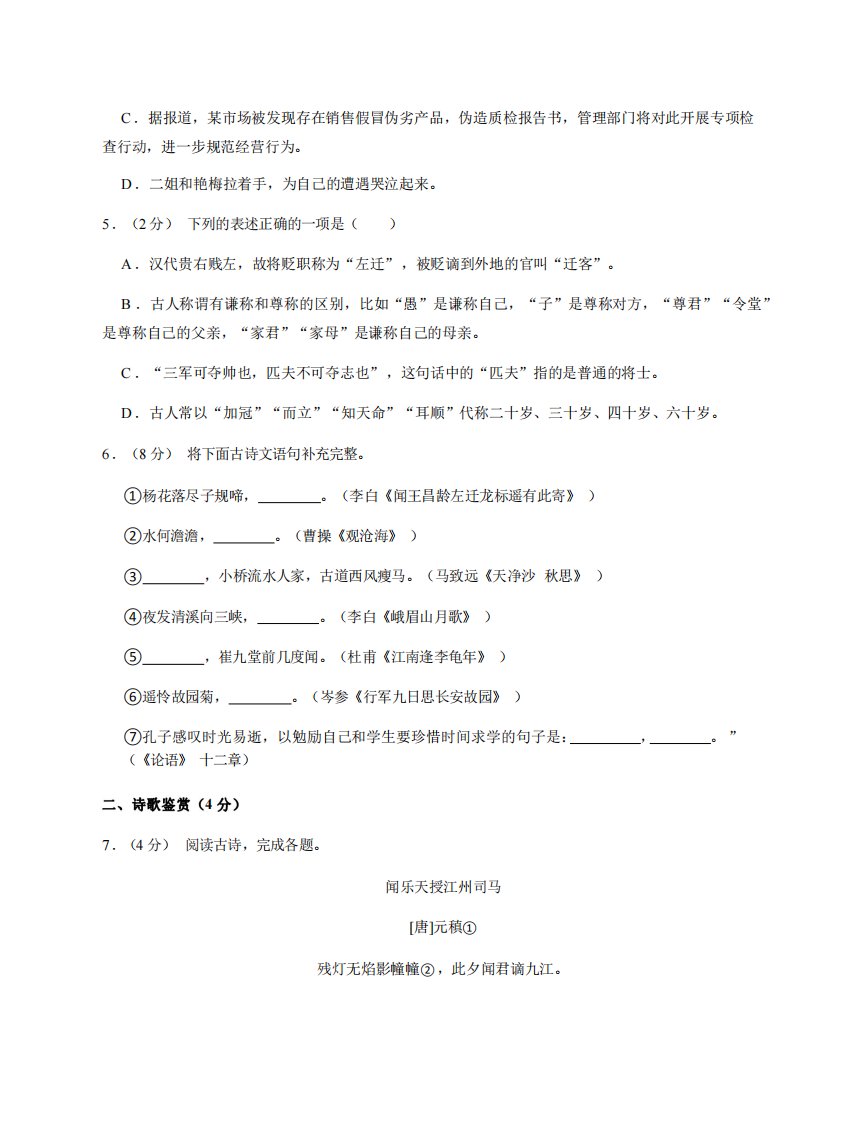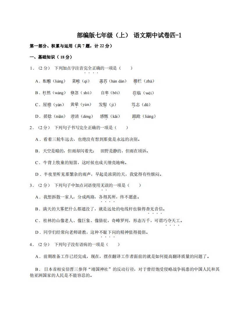 七年级(上)语文期中试卷4-1卷部编版_共8页