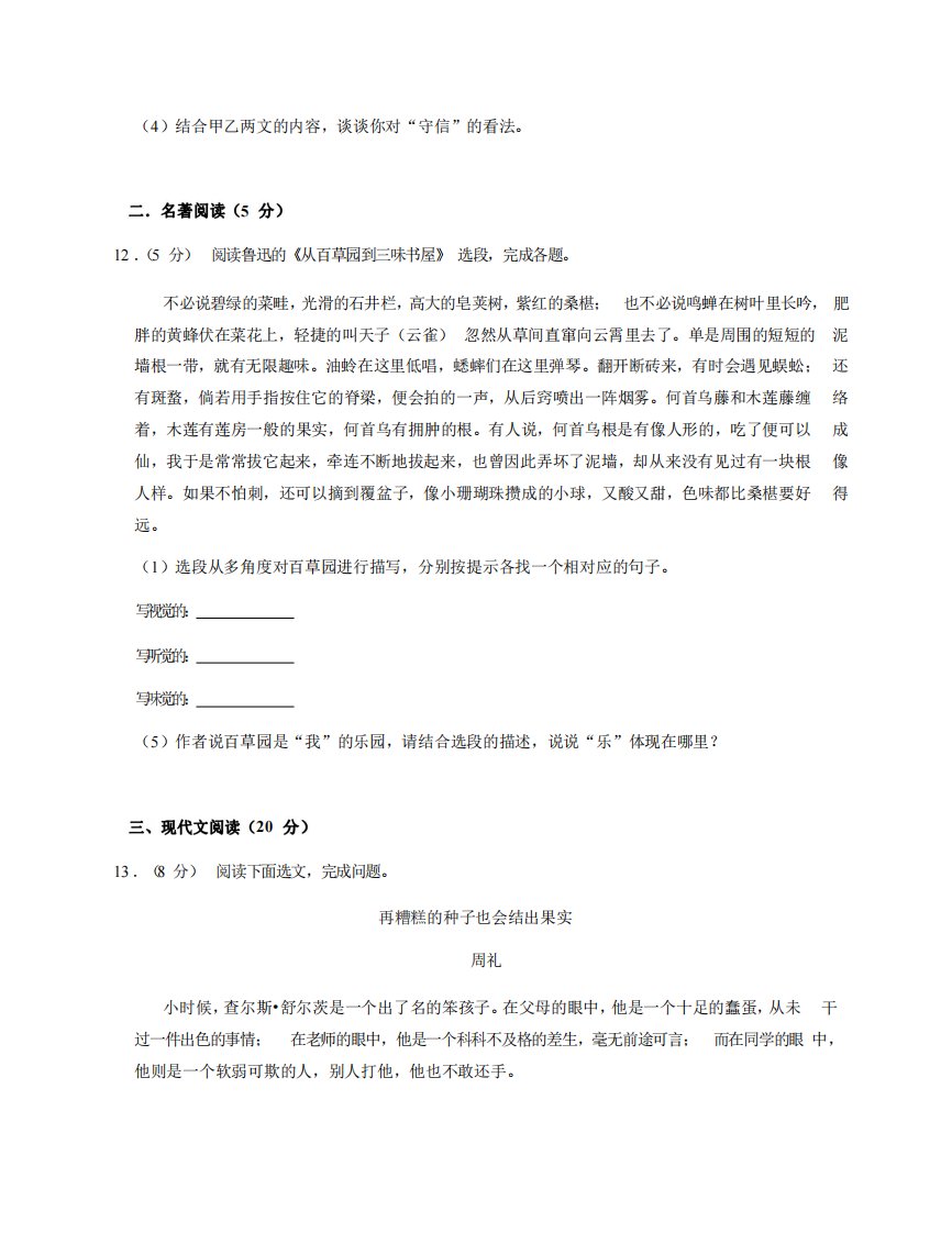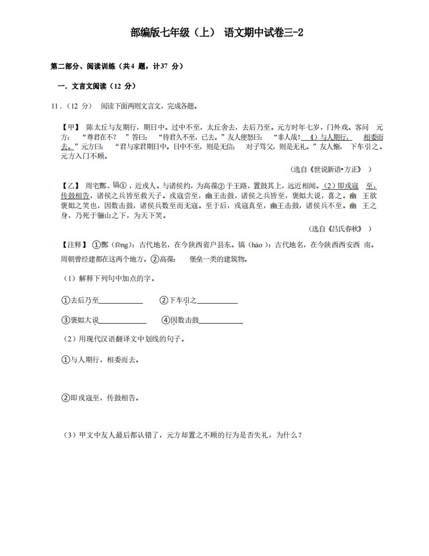 七年级(上)语文期中试卷3-2卷部编版_共10页