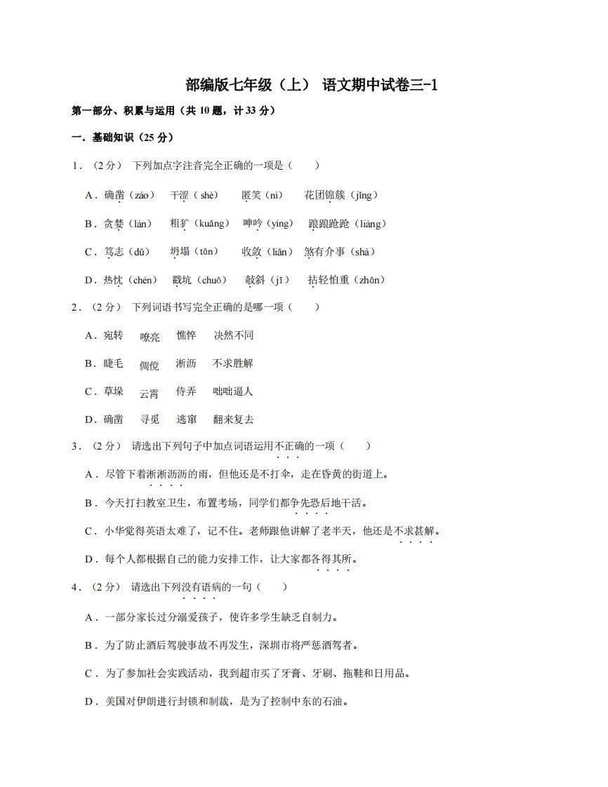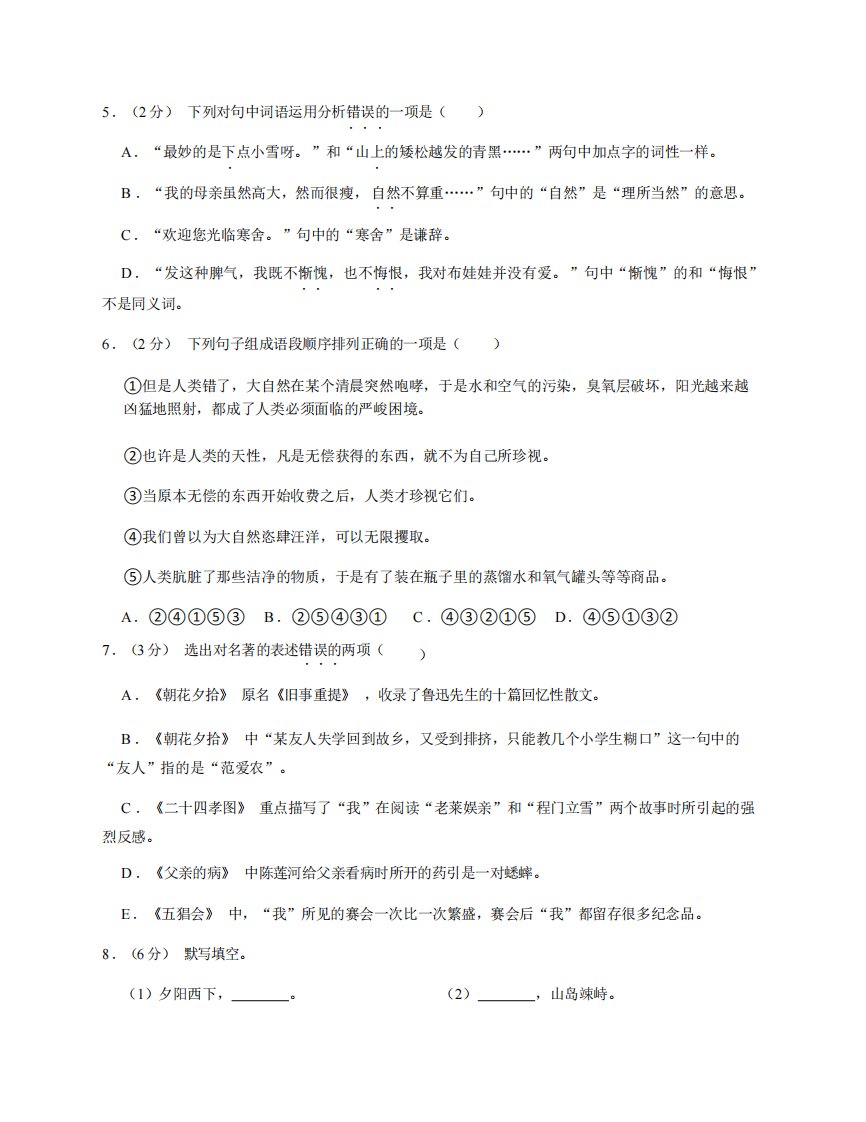 当前位置: 首页初中资源初中七年级正文 七年级(上)语文期中试卷3-1卷部编版_共7页 初中七年级 2 周前 0 0 5 以上为部分内容预览,如需源文档请登录您的会员账号进行下载! 声明:本站所有文章,如无特殊说明或标注,均为本站原创发布。任何个人或组织,在未征得本站同意时,禁止复制、盗用、采集、发布本站内容到任何网站、书籍等各类媒体平台。如若本站内容侵犯了原著者的合法权益,可联系我们进行处理。 尚学资源永久会员 打赏 收藏 海报 链接