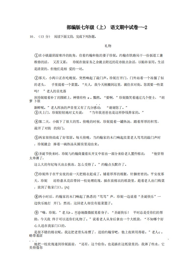 七年级(上)语文期中试卷1-2卷部编版_共6页