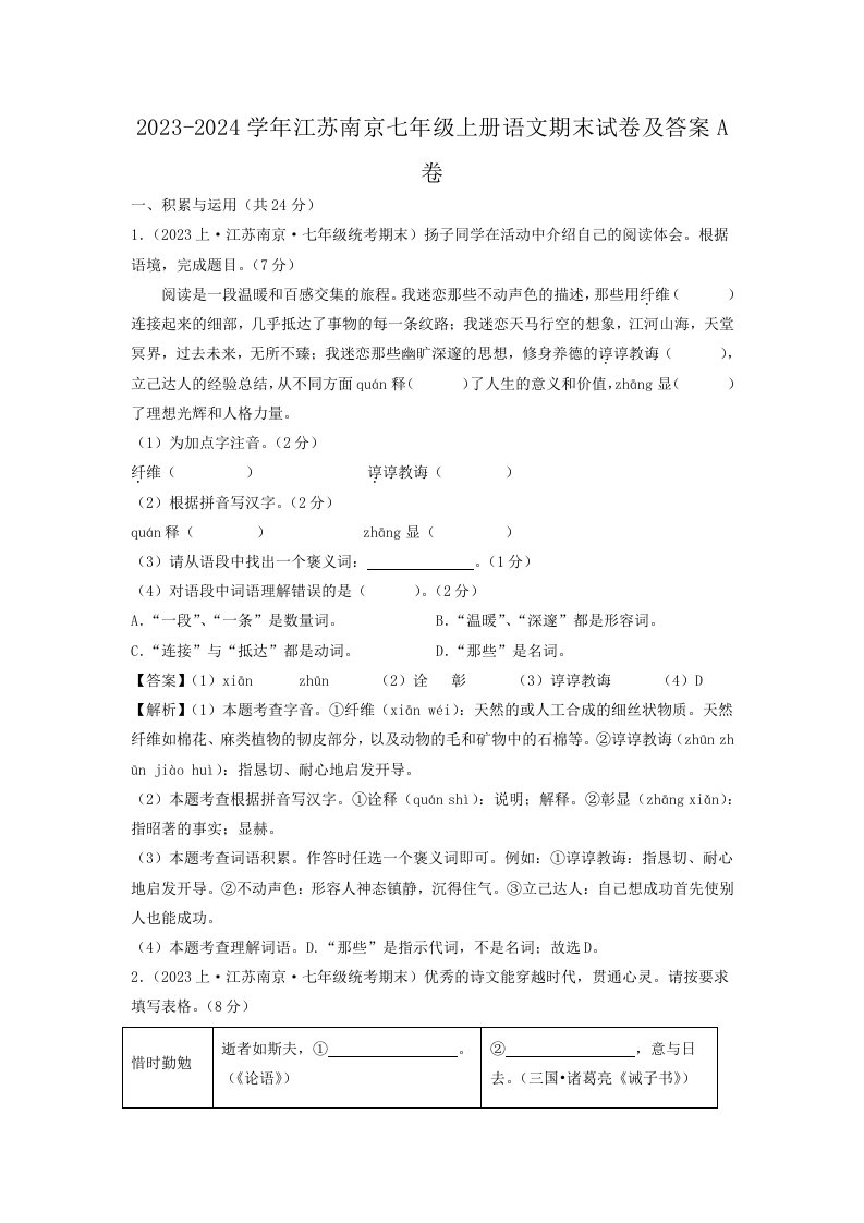 当前位置: 首页初中资源初中七年级正文 2023-2024学年江苏南京七年级上册语文期末试卷及答案A卷(Word版)_共18页 初中七年级 2 周前 0 0 10 以上为部分内容预览,如需源文档请登录您的会员账号进行下载! 声明:本站所有文章,如无特殊说明或标注,均为本站原创发布。任何个人或组织,在未征得本站同意时,禁止复制、盗用、采集、发布本站内容到任何网站、书籍等各类媒体平台。如若本站内容侵犯了原著者的合法权益,可联系我们进行处理。 尚学资源永久会员 打赏 收藏 海报 链接