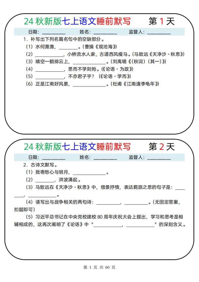 当前位置: 首页初中资源初中七年级正文 【24新版】七上语文睡前默写59天(1)_共60页 初中七年级 2 周前 0 0 15 以上为部分内容预览,如需源文档请登录您的会员账号进行下载! 声明:本站所有文章,如无特殊说明或标注,均为本站原创发布。任何个人或组织,在未征得本站同意时,禁止复制、盗用、采集、发布本站内容到任何网站、书籍等各类媒体平台。如若本站内容侵犯了原著者的合法权益,可联系我们进行处理。 尚学资源永久会员 打赏 收藏 海报 链接