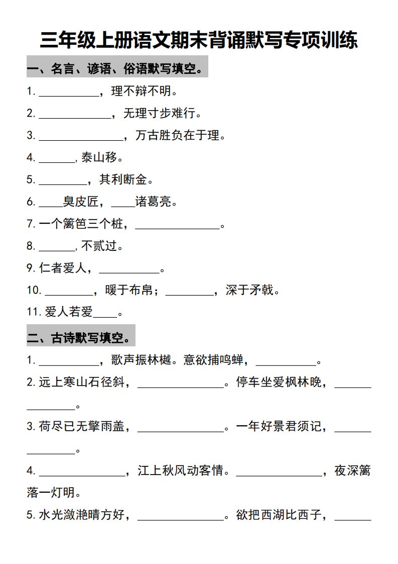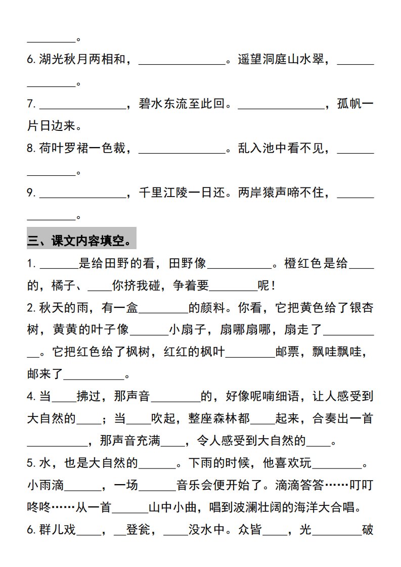 当前位置: 首页小学资源小学三年级正文 三年级上册语文期末背诵默写专项训练_共6页 小学三年级 2 周前 0 0 5 以上为部分内容预览,如需源文档请登录您的会员账号进行下载! 声明:本站所有文章,如无特殊说明或标注,均为本站原创发布。任何个人或组织,在未征得本站同意时,禁止复制、盗用、采集、发布本站内容到任何网站、书籍等各类媒体平台。如若本站内容侵犯了原著者的合法权益,可联系我们进行处理。 尚学资源永久会员 打赏 收藏 海报 链接