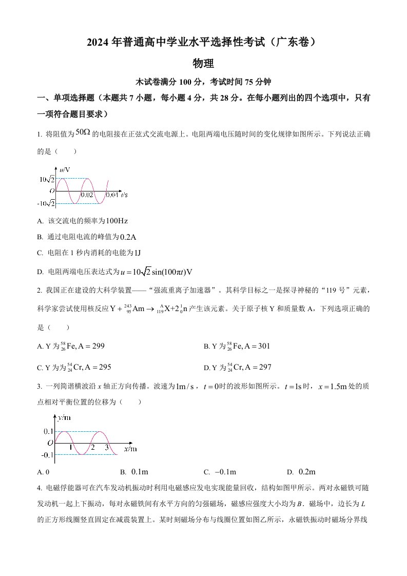 当前位置: 首页高中资源高考真题正文 2024年高考物理试卷(广东)(空白卷)_共8页 高考真题 2 周前 0 0 5 以上为部分内容预览,如需源文档请登录您的会员账号进行下载! 声明:本站所有文章,如无特殊说明或标注,均为本站原创发布。任何个人或组织,在未征得本站同意时,禁止复制、盗用、采集、发布本站内容到任何网站、书籍等各类媒体平台。如若本站内容侵犯了原著者的合法权益,可联系我们进行处理。 尚学资源永久会员 打赏 收藏 海报 链接