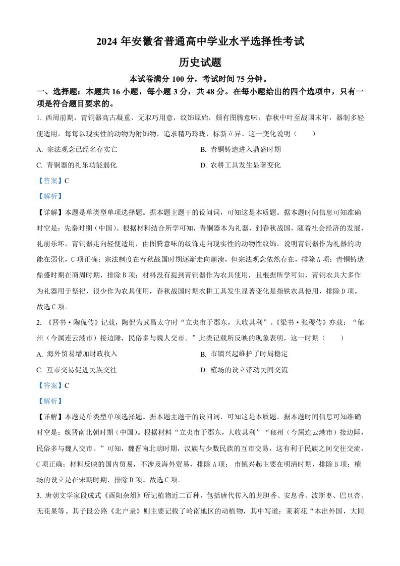 当前位置: 首页高中资源高考真题正文 2024年高考历史试卷(安徽)(含答案)_共12页 高考真题 2 周前 0 0 10 以上为部分内容预览,如需源文档请登录您的会员账号进行下载! 声明:本站所有文章,如无特殊说明或标注,均为本站原创发布。任何个人或组织,在未征得本站同意时,禁止复制、盗用、采集、发布本站内容到任何网站、书籍等各类媒体平台。如若本站内容侵犯了原著者的合法权益,可联系我们进行处理。 尚学资源永久会员 打赏 收藏 海报 链接